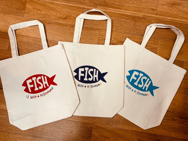 FISHなキャンバストートバッグです♪ ナチュラルなキャンバス生地なので、使っていくうちにいい感じになります♡ 大きさはA4ファイルがすっぽりと収まる大きさです。 肩にも掛けられます♪ プリントの色は、レッド、ネイビー、ブルーの三色がございます。