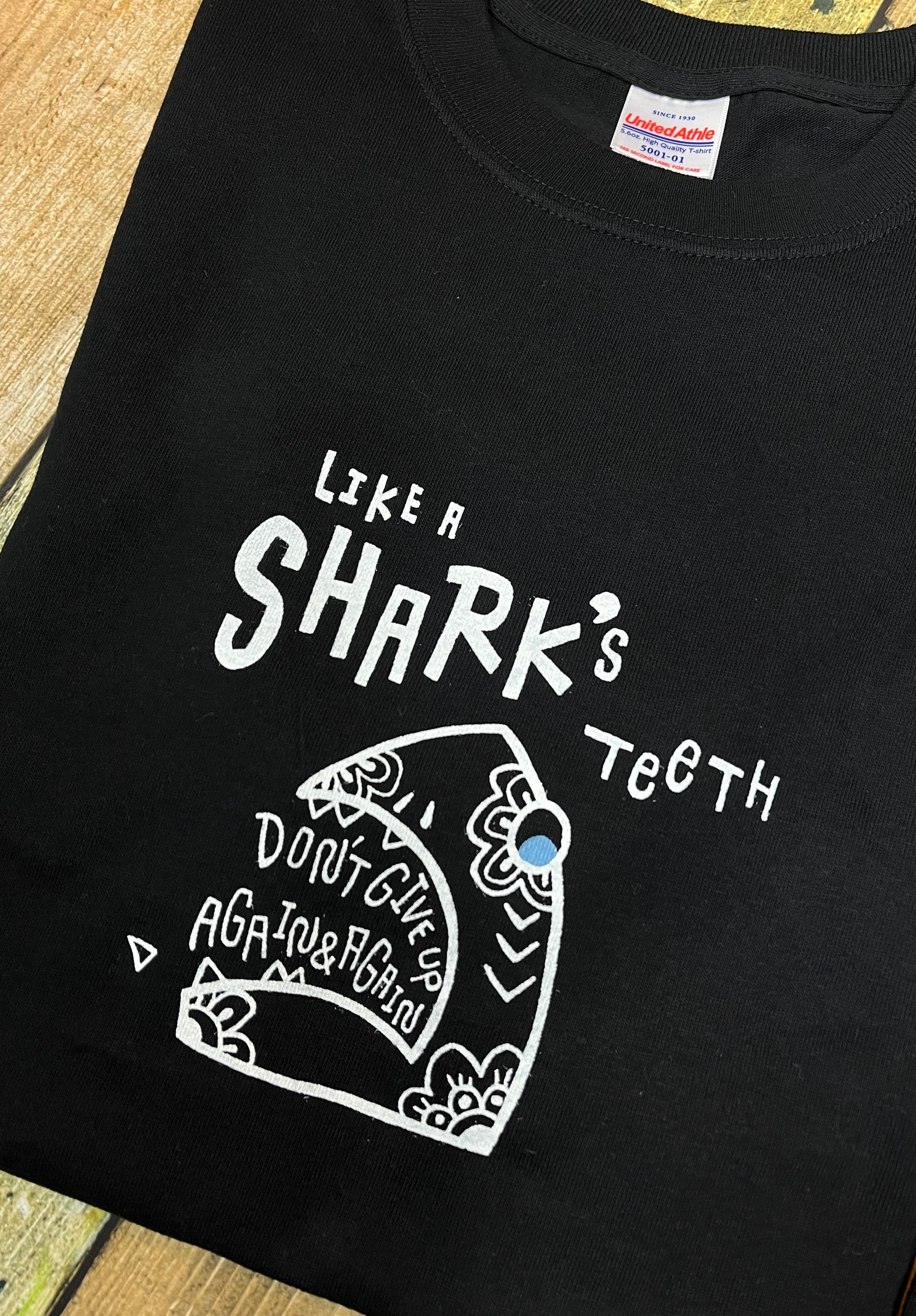 何度も生え変わるサメの歯のように何事も諦めずに何度も何度も頑張ろう♪という意味を込めて作りました。